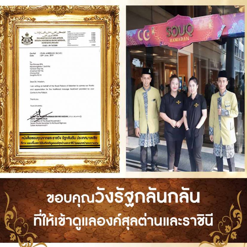 อะปริ๊นเซสของเราถือเป็นเกียรติอันสูงสุดที่ได้นำการแผนไทย ได้ไปดังไกล และสร้างชื่อเสียงให้กับนานาชาติ เราพร้อมพัฒนาและจะไม่ทำให้คนไทยผิดหวัง ขอให้คุณมั่นใจเดอะปริ๊นเซส และมั่นใจในนวดแผนไทย นวดมรดกโลกว่ามีดีที่สุด ภูมิใจและพร้อมจะพัฒนาเข้าสู่ระดับโลกต่อไป หากมีโอกาสดีๆจะไม่ทำให้คนไทยผิดหวังเลยค่ะ ขอขอบพระคุณทางวังที่มอบ ใบ THANK YOU ให้เรามาได้ปลาบปลื้มมีกำลังใจในการทำงานมากขึ้นเลยค่ะ